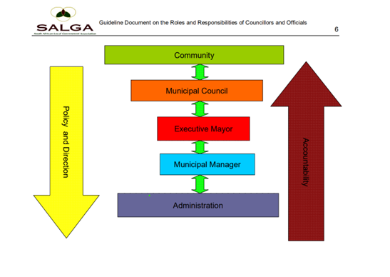 To ensure effective accountability and oversight, there must be a clear separation of powers between the municipality’s legislative body (council, mayor, executive committee) and its administrative functions. Overlapping or duplicating responsibilities can weaken oversight mechanisms.